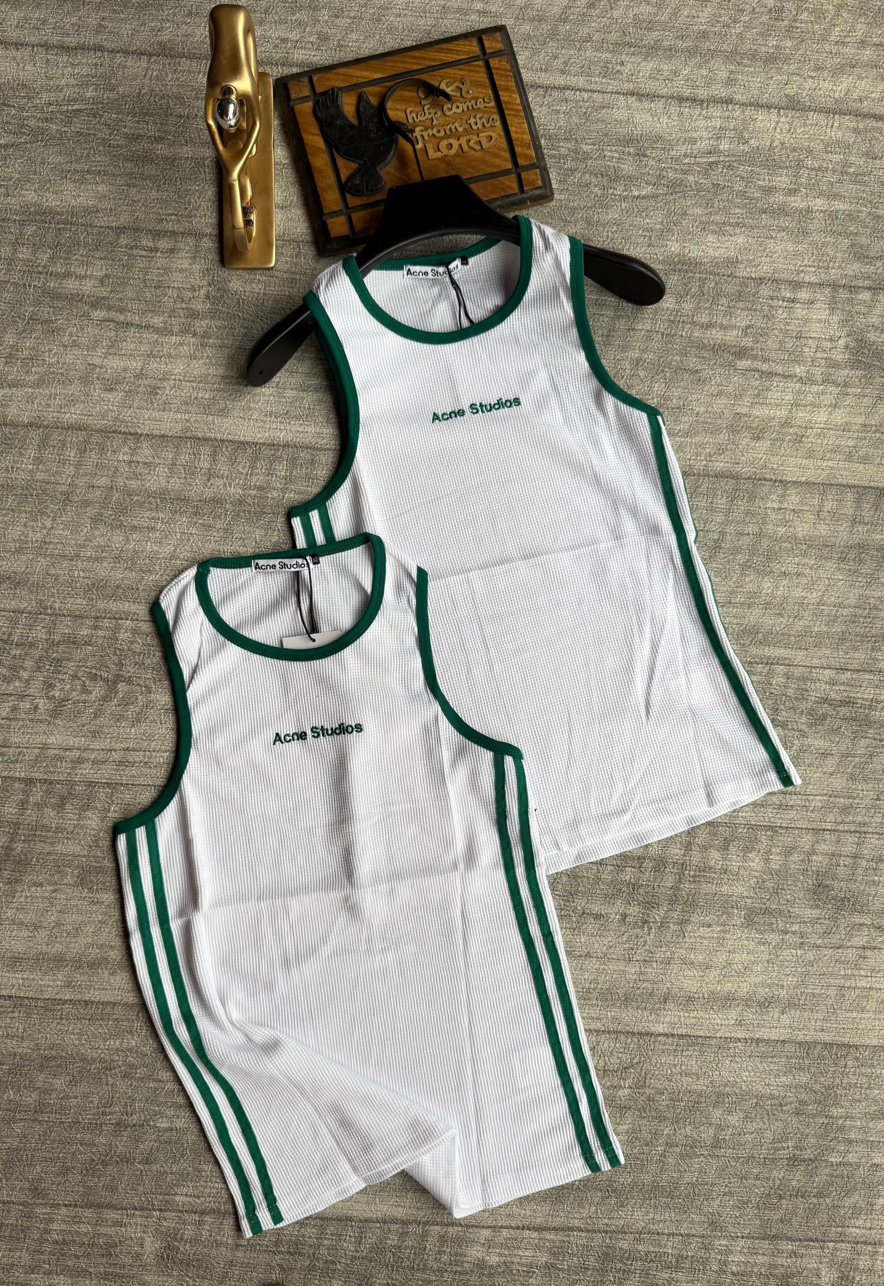 Elevate your casual prestige with the Acne Studios “Arctic Emerald” Singlet. This piece is the “correct” move for the 2026 minimalist, blending a crisp, clinical white base with vibrant emerald green accents. Designed with a high-definition vertical rib and a signature athletic silhouette, it’s a boutique-standard essential that commands attention through its simplicity and “Topnotch” construction.
