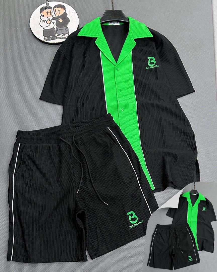 Elevate your leisure rotation with a set that defines high-contrast luxury and technical textile depth. This is the “correct” move for the man who wants a vibrant, high-velocity aesthetic without sacrificing a sophisticated silhouette. Featuring a specialized Micro-Pleated (Plissé) Fabric in a striking “Electric Verde” and Noir colorway, it’s a Topnotch essential for the 2026 social scene.
