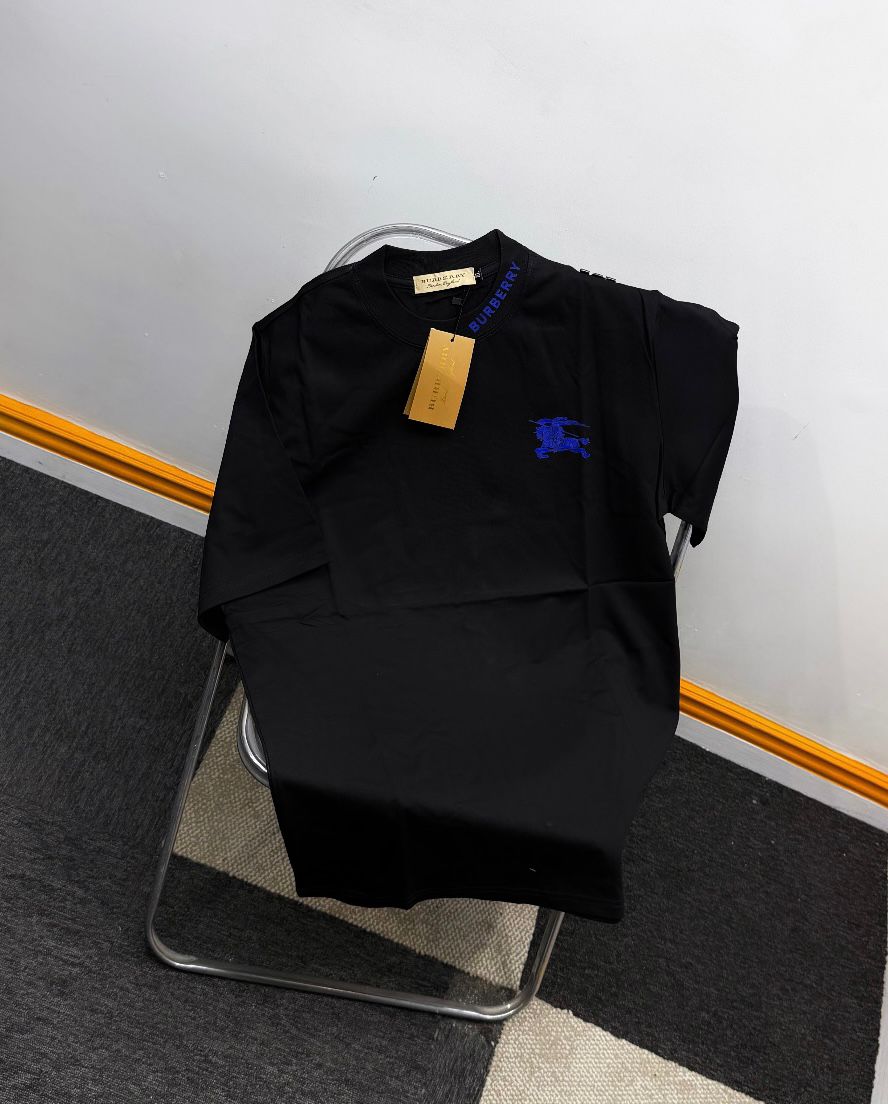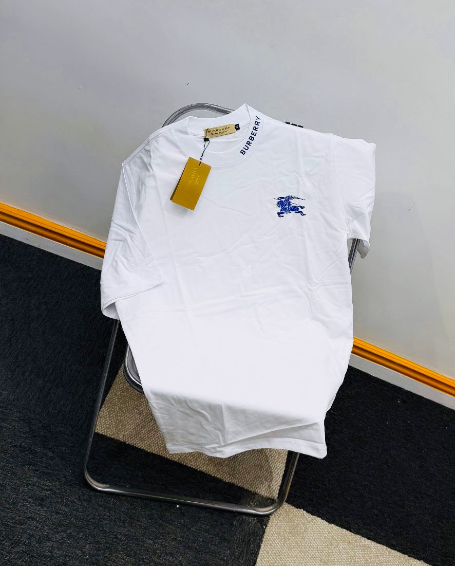 Tonal Collar Branding: “BURBERRY” block lettering precisely printed around the neckline for a contemporary aesthetic.