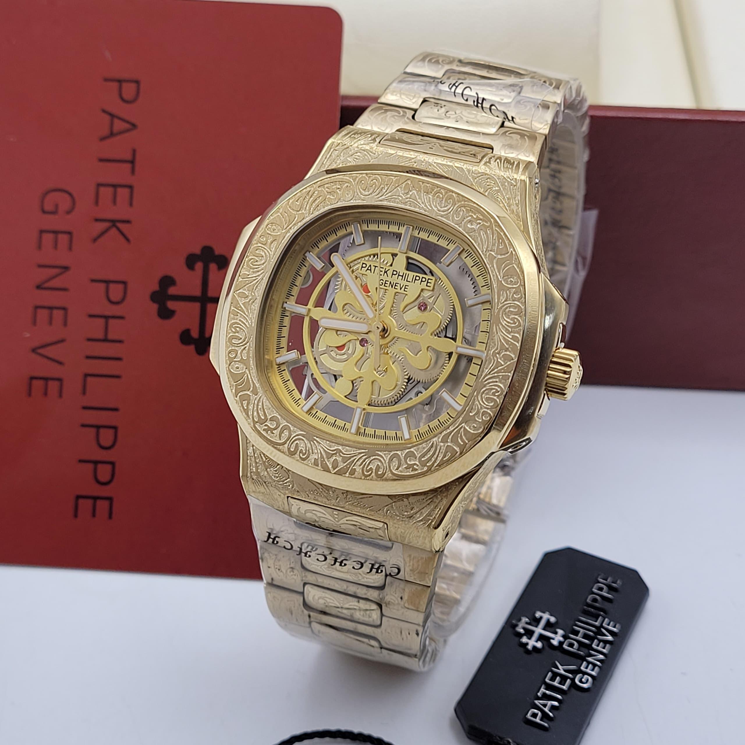 Where Heritage Meets High-Art. The “Royal Skeleton” Nautilus is designed for the collector who seeks absolute exclusivity. Every surface of the stainless steel integrated bracelet and the 18k Rose Gold-plated bezel has been meticulously engraved with classical floral scrollwork, transforming a sports icon into a piece of wearable sculpture.