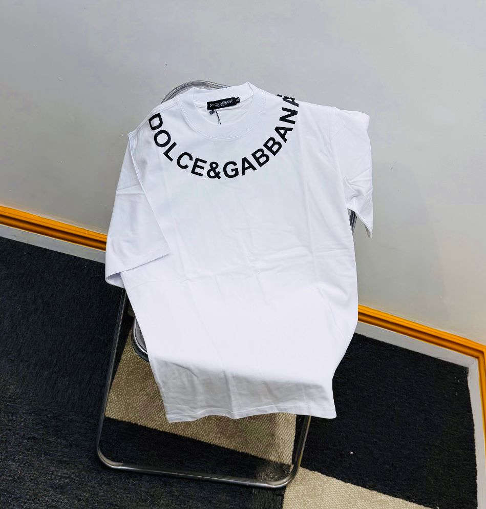 Define your status with the ultimate “Big Boy” luxury basic. Our D&G Curve Logo Series reimagines minimalist branding by focusing on the neckline. Featuring a bold, arched Dolce & Gabbana signature that wraps precisely around the collarbone, these tees provide a high-fashion, architectural look that signals elite designer taste. It’s the “correct” way to do a logo tee in 2026—sophisticated, sharp, and unmistakable.