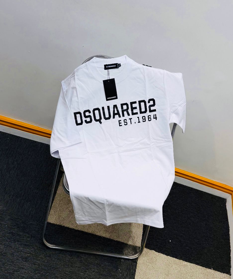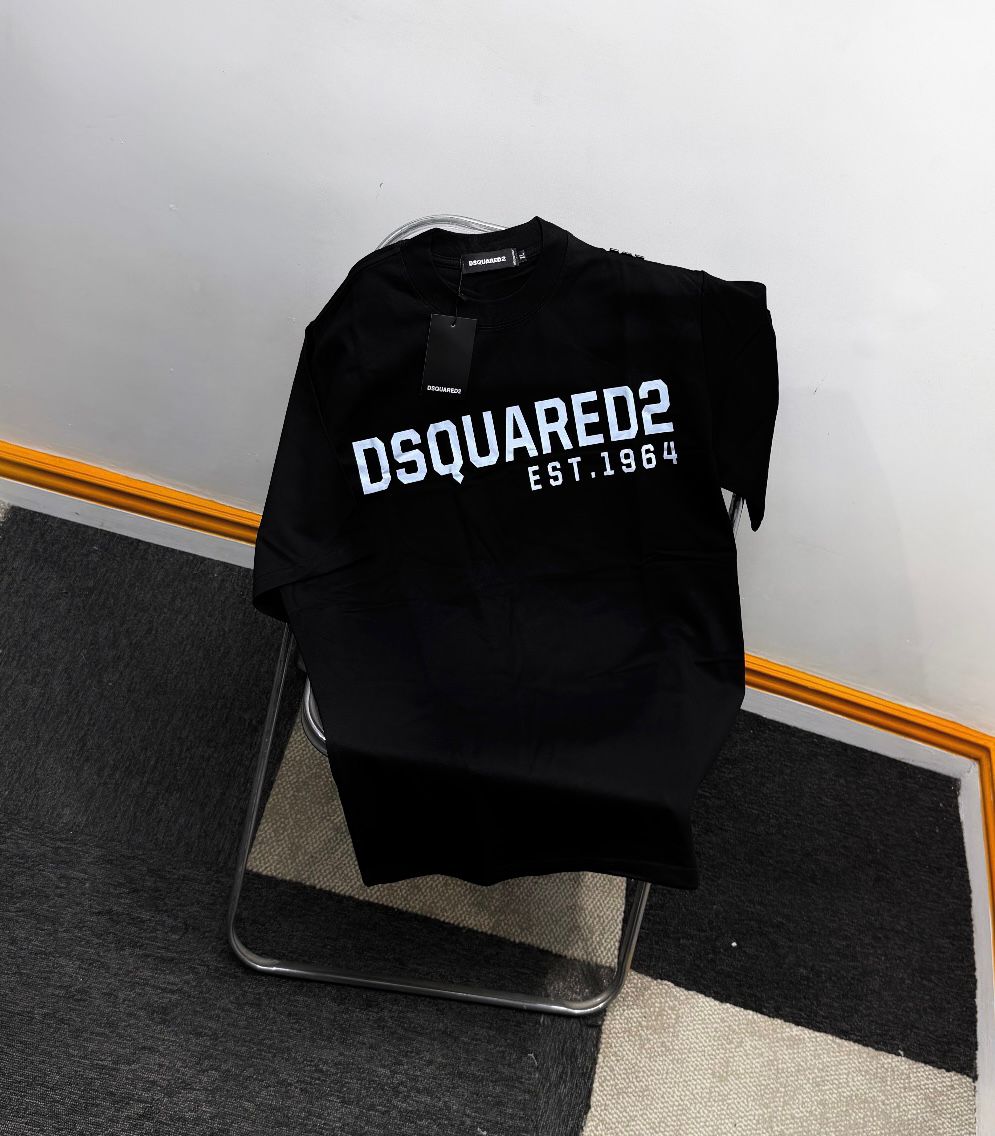 Bold Block Branding: High-density, contrast screen print featuring the signature “DSQUARED2 EST. 1964” graphic across the chest.