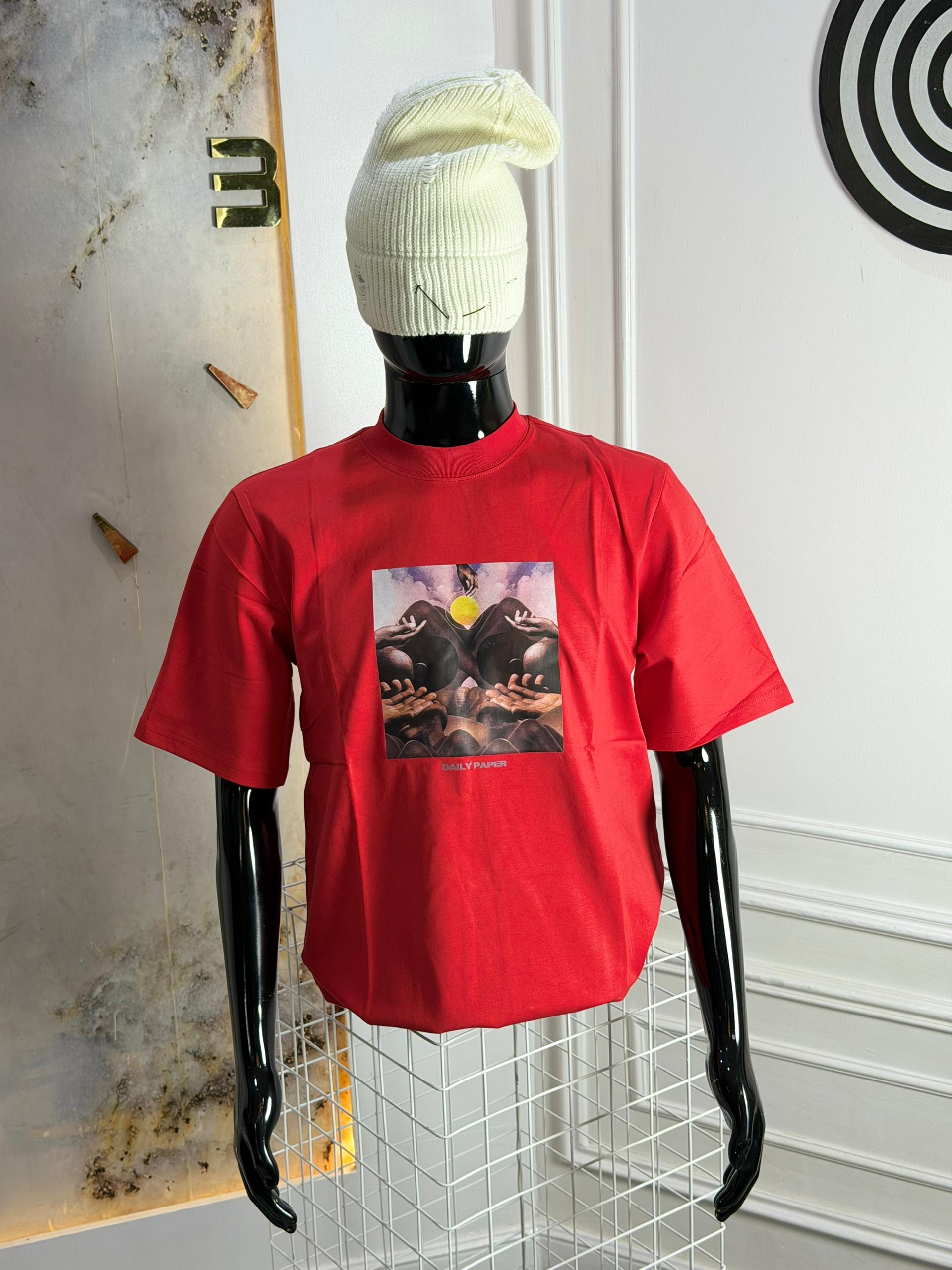 The Idumota “Surrealist Sun” Graphic Tee: Bold Red & High-Street Artistry
