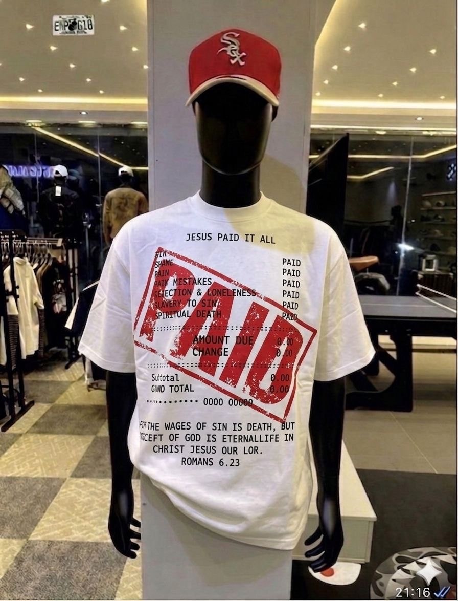 At Idumota, we believe your clothing should speak volumes before you even say a word. The “Jesus Paid It All” Tee is designed for those who want to share the message of grace in a way that is visually arresting and culturally relevant. By utilizing the “Receipt” trend currently dominating luxury streetwear, this shirt turns a fashion staple into a powerful conversation starter.