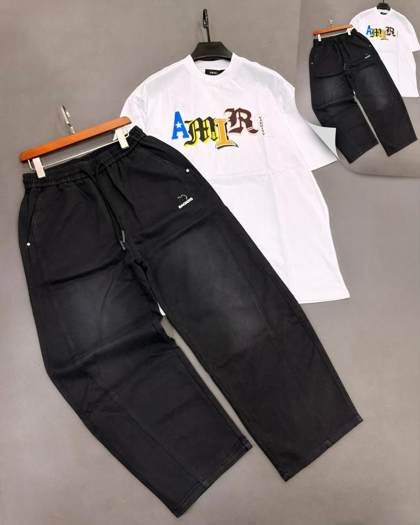Clean, sharp, and undeniably high-status. This combo is the “correct” move for the man who wants a clinical white foundation paired with the rugged, industrial depth of our specialized denim-wash joggers. Featuring the multi-color Amiri Varsity Tee and our Vantage-Noir Wide-Leg Joggers, it’s a Topnotch choice for the 2026 urban pioneer.