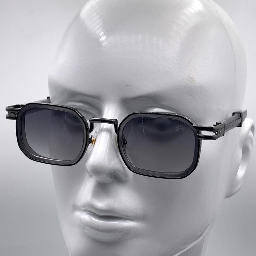 “Double-M” Temple Tech: Intricately engineered silver hinges featuring the Maybach emblem and a textured industrial “piston” arm for a clinical, heavy-weight feel.