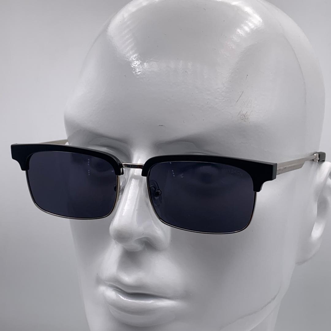 Industrial Silver Underwire: The midnight lenses are anchored by high-polish silver steel rims, creating a high-contrast, clinical aesthetic.