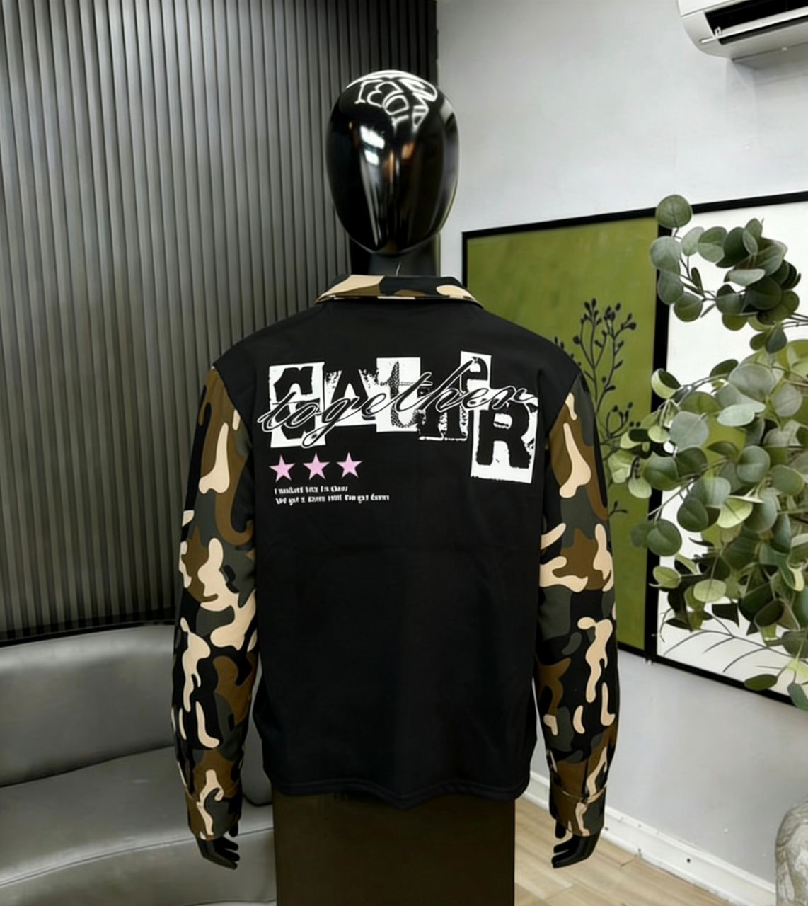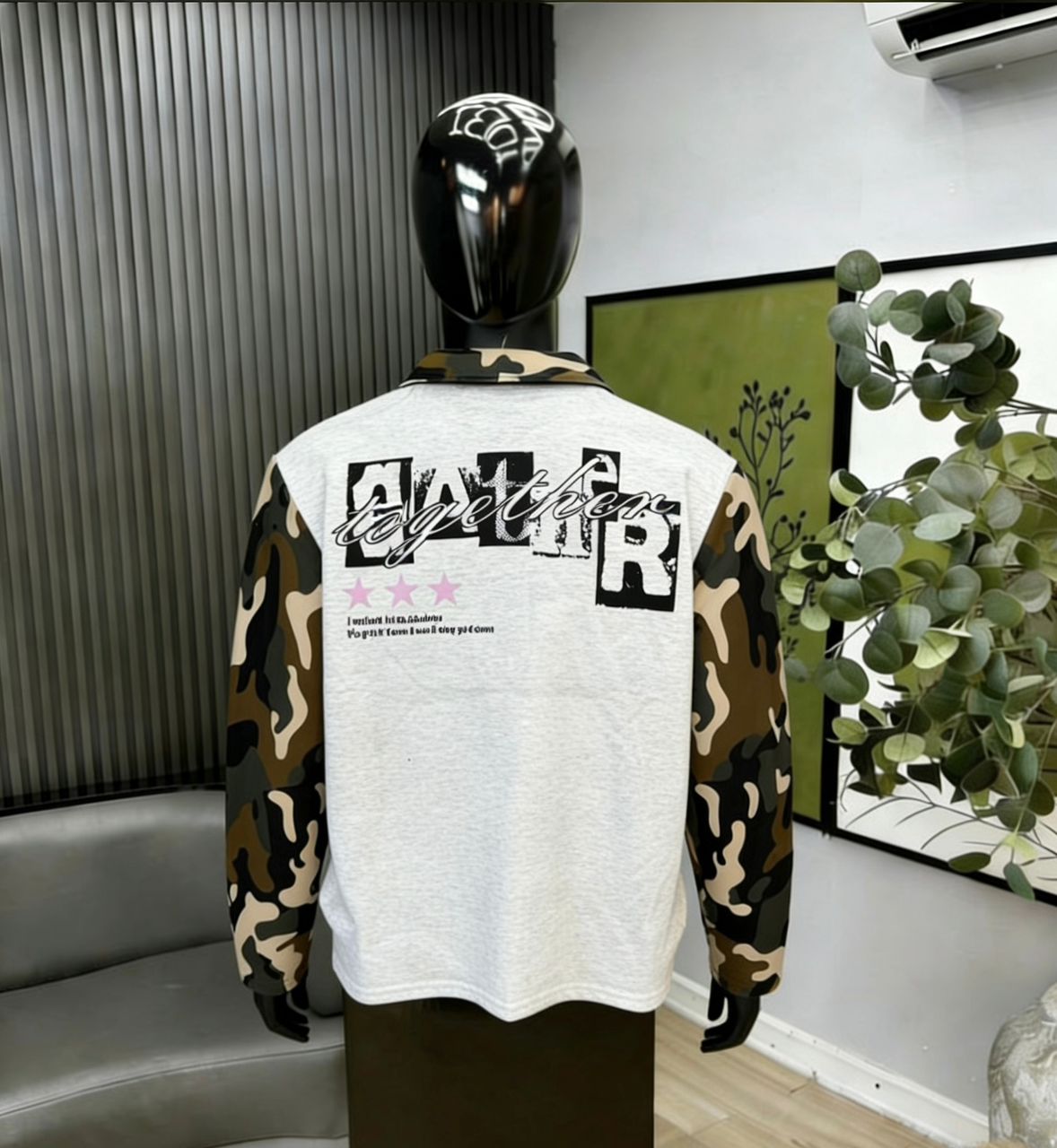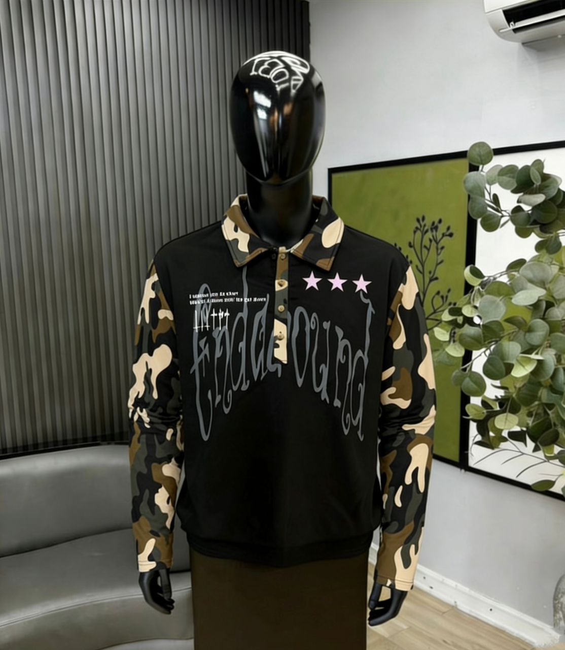 Step into the future of urban fashion with our Camo-Sleeve Graphic Polo Pullover. Moving away from traditional hoodies, this piece offers a more structured, sartorial silhouette while maintaining the raw energy of underground streetwear. Designed for the man who leads rather than follows, this pullover is a masterclass in texture and tonal contrast.