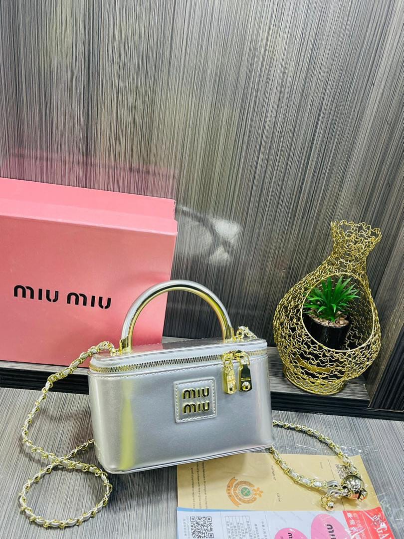Break away from ordinary, unstructured bags. This vanity bag features a rigid, structured rectangular profile that stands upright on its own, maintaining its sharp lines no matter how much you carry. The mirror-patent leather base provides a velvety, liquid reflection that catches and reflects light from every possible angle, creating a multi-dimensional high-shine experience that resistant to fingerprints.