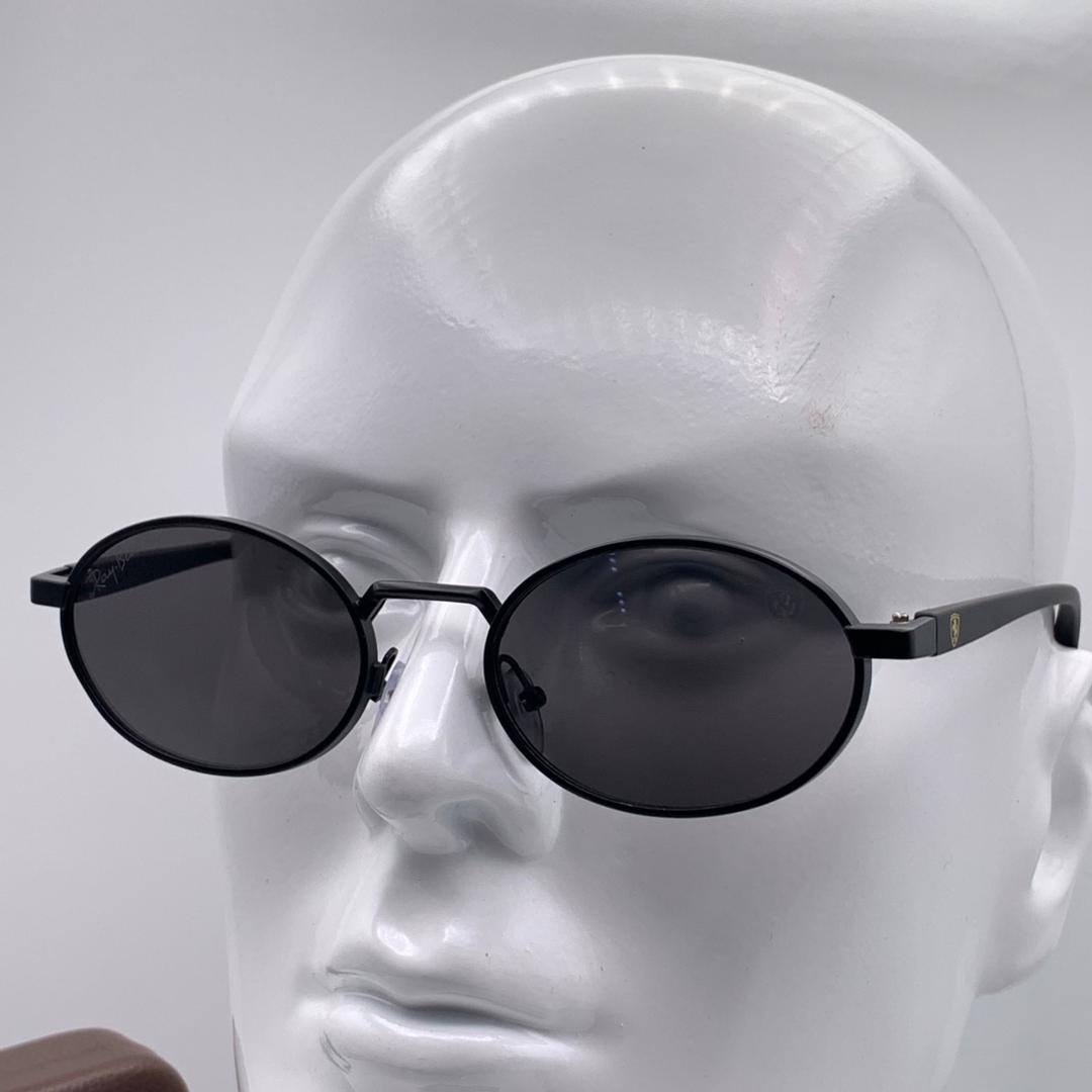 Gold Shield Branding: Detailed with a signature gold crest on the temples—providing a subtle, high-status contrast against the midnight noir base.