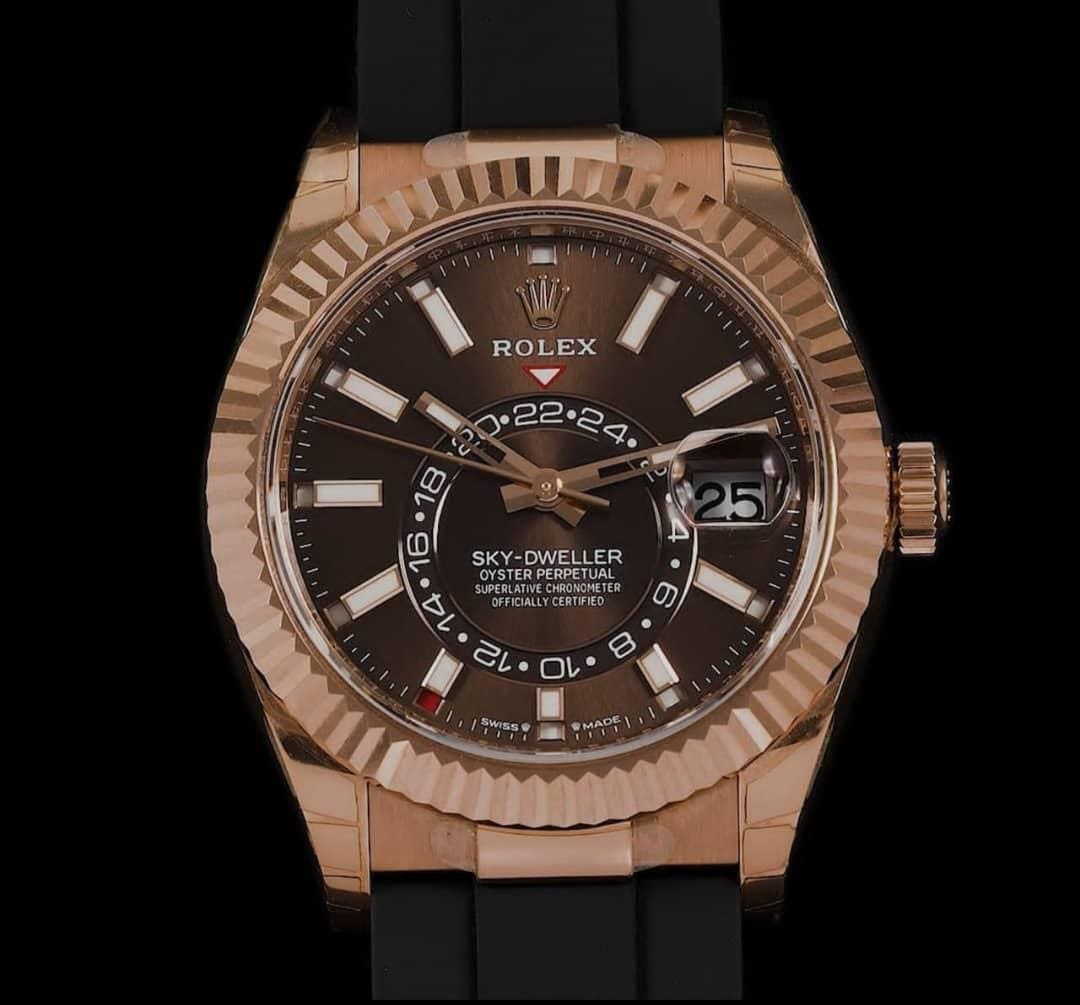 Control the time zones. DM to secure your Rolex “Oysterflex-Chocolate” Sky-Dweller today!
