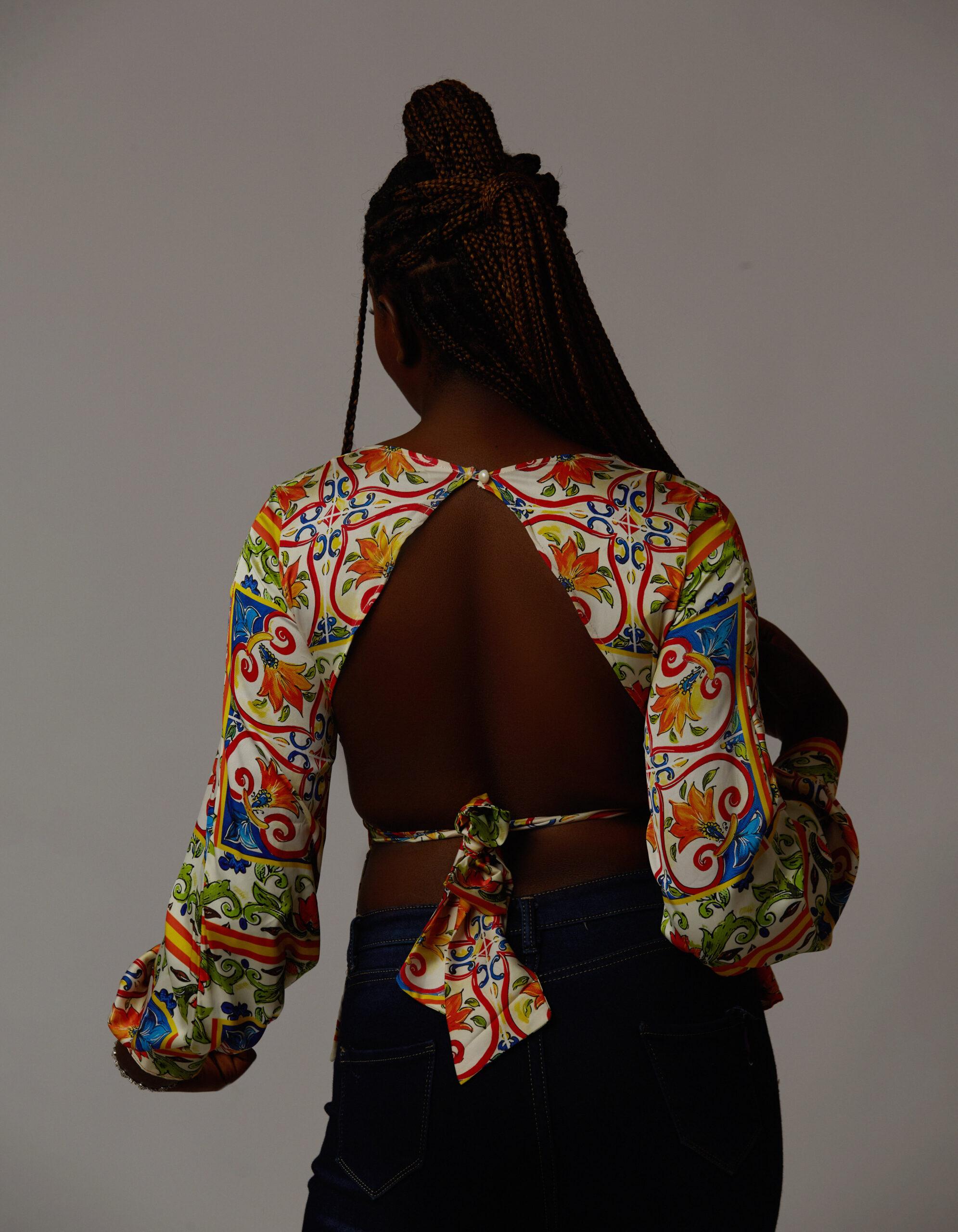 Shop our SKYLAR multicolored Dolce & Gabbana open-back blouse.