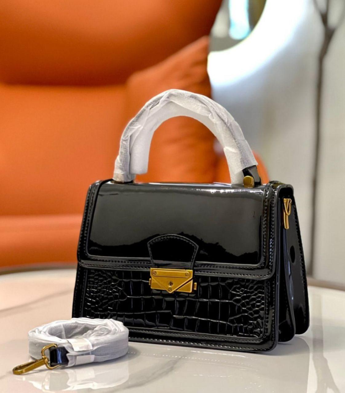 Step into the pinnacle of structured sophistication with the Enigma Duo-Texture Satchel. Exclusively curated for Idumota.com, this bag is a masterclass in visual contrast, blending the reflective brilliance of mirror-patent with the rugged allure of embossed crocodile. Designed for the woman who demands a high-stakes accessory that transitions from power meetings to exclusive evening socials, it is the definitive “power bag” of 2026.