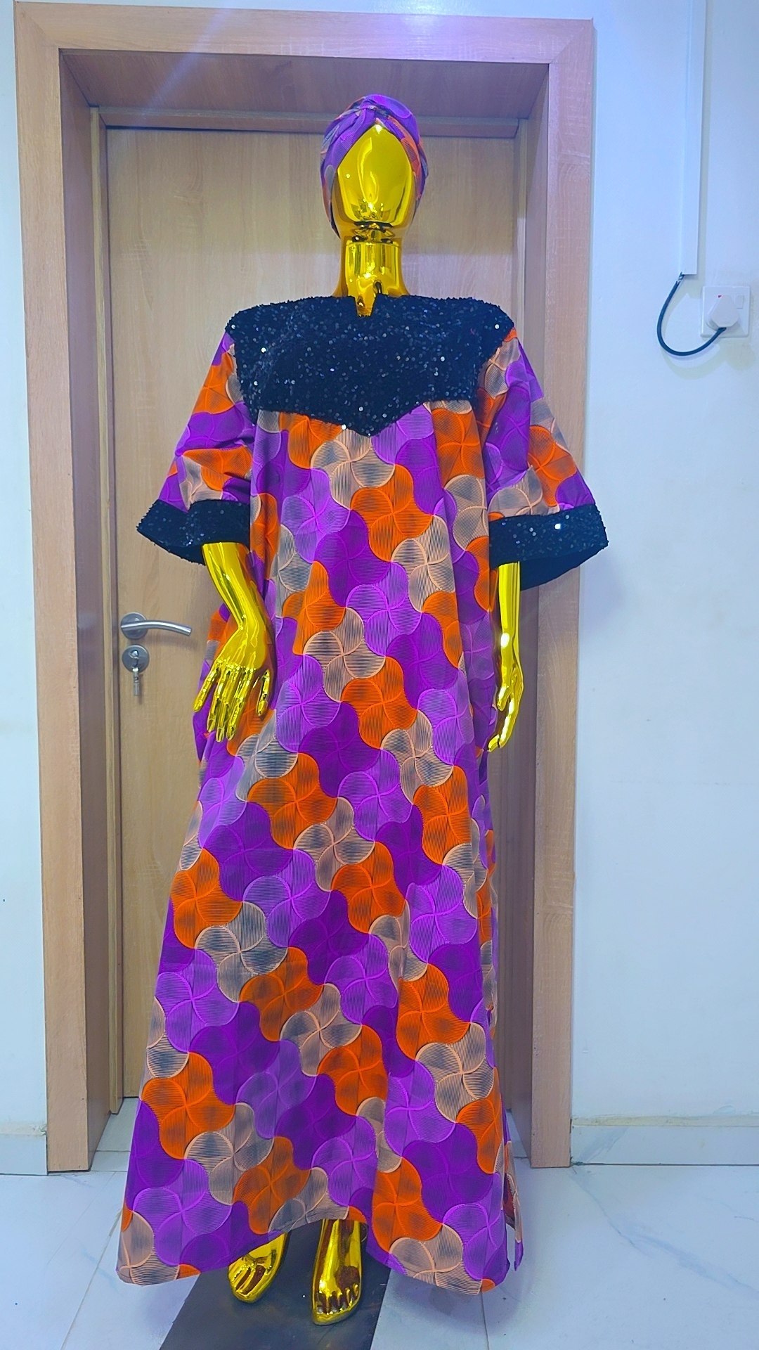 The 2026 “Radiant-Industrial” Aesthetic In our boutique, the 2026 season is defined by “Geometric Dominance.” The Imperial-Amethyst Bubu discards standard, flat prints for a piece of wearable engineering that balances raw visual energy with high-end modern shimmer. It is the definitive move for the woman who wants her presence to signal high-fashion IQ and unshakeable confidence, pairing flawlessly with our Gold-Crest “Empire” Sandals.