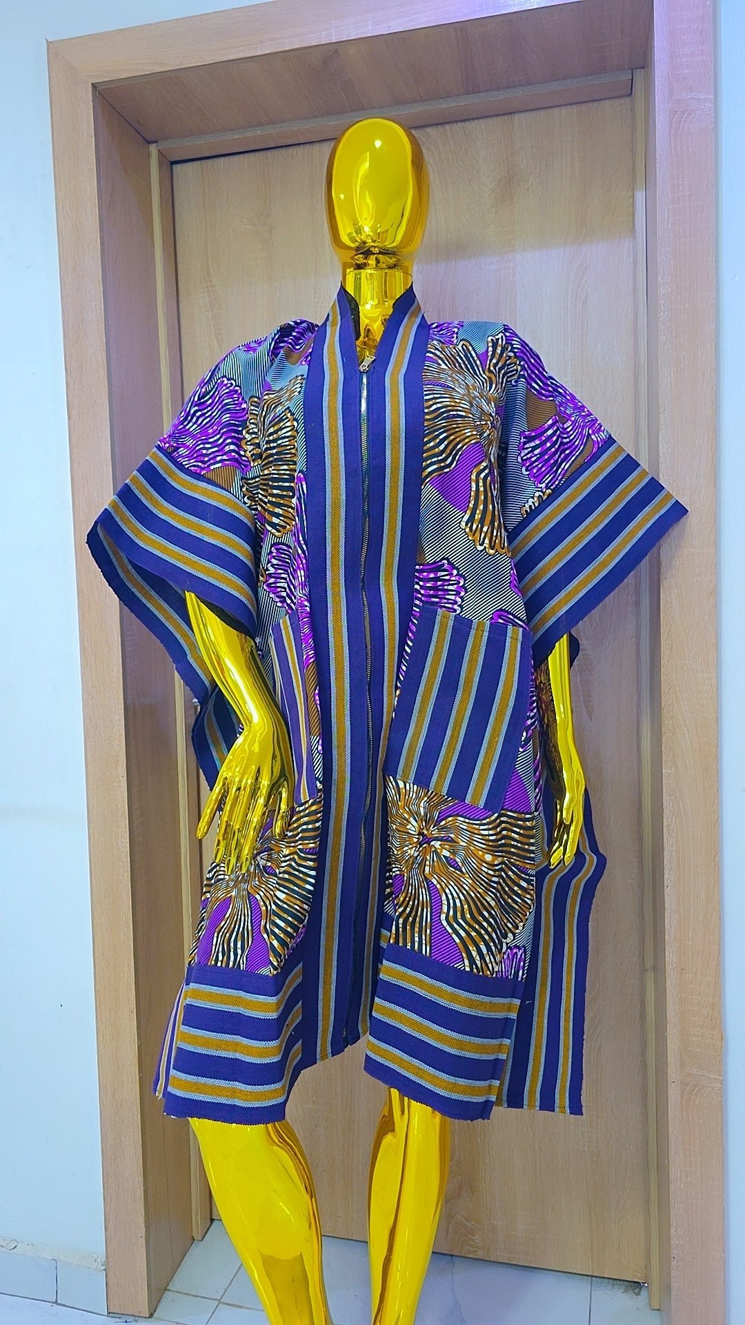 | Material | Premium Pinstriped Cotton / Ankara Accents |