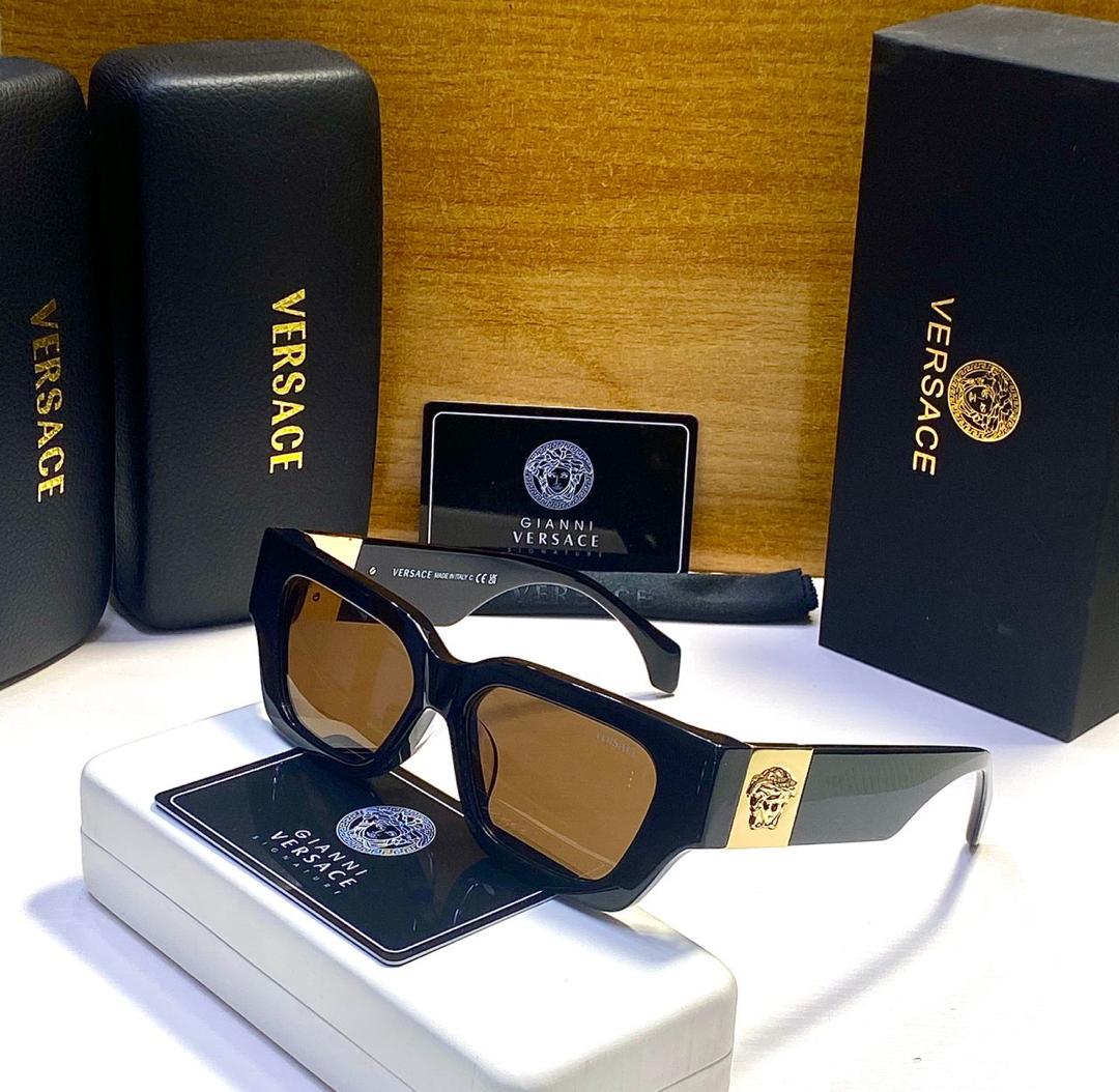 Bold Geometry. Gilded Medusa Iconography. Total Command. Step into the spotlight with the Versace Medusa Biggie collection. Featuring a thick-profile oversized hexagonal-rectangular silhouette and the breathtaking, gold-tone Medusa medallion on the temples, these sunglasses redefine urban elegance. Available in four high-impact lens tints and classic frame finishes, they provide an elite visual experience with maximum UV protection. Secure the definitive “power frame” for your 2026 wardrobe.